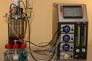 - Stainless steel "monoblock" construction, which contains the bioprocess controller BIO-4, the thermostat, peristaltic pumps, power control parts, gas supply and mixing (air, O2) units;