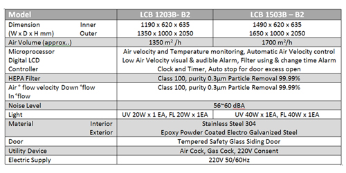 - Built-In Lamps and Utilities, UV and fluorescent lamp, air and gas cock, power consent are builted as standard