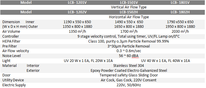- Built-In Lamps and Utilities, UV and fluorescent lamp, air and gas cock, Power consent are builted as standard