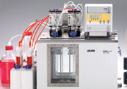 This unique modular system allows individual configuration of measuring systems, from one to four to even eight measuring stands, with automatic cleaning or automatic sample generator. We present four design examples below.